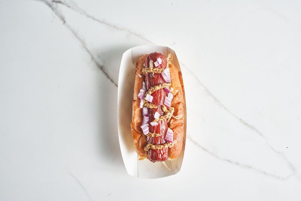 Beef & Pork Local Hot Dog / House-Made Sauerkraut / Grainy Mustard / Diced Onions