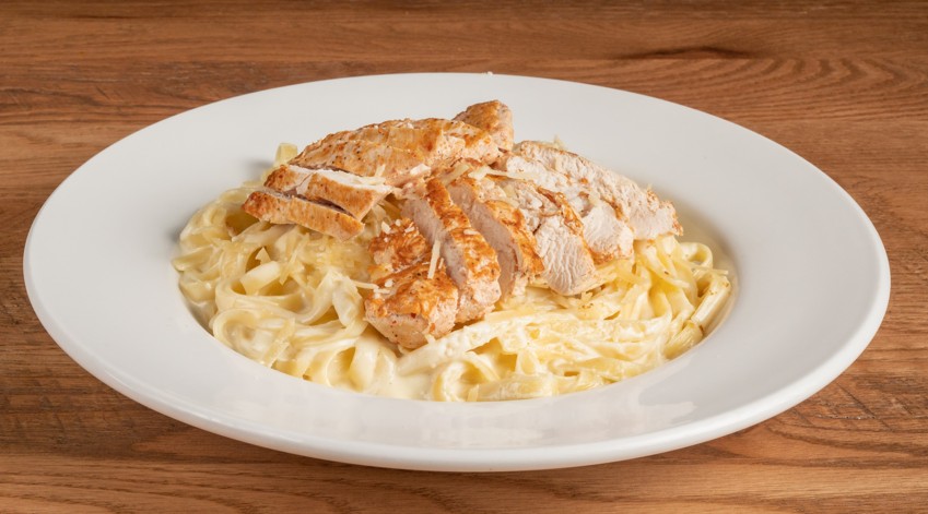 Creamy white sauce with parmesan cheese, broccoli and topped with grilled cajun chicken.