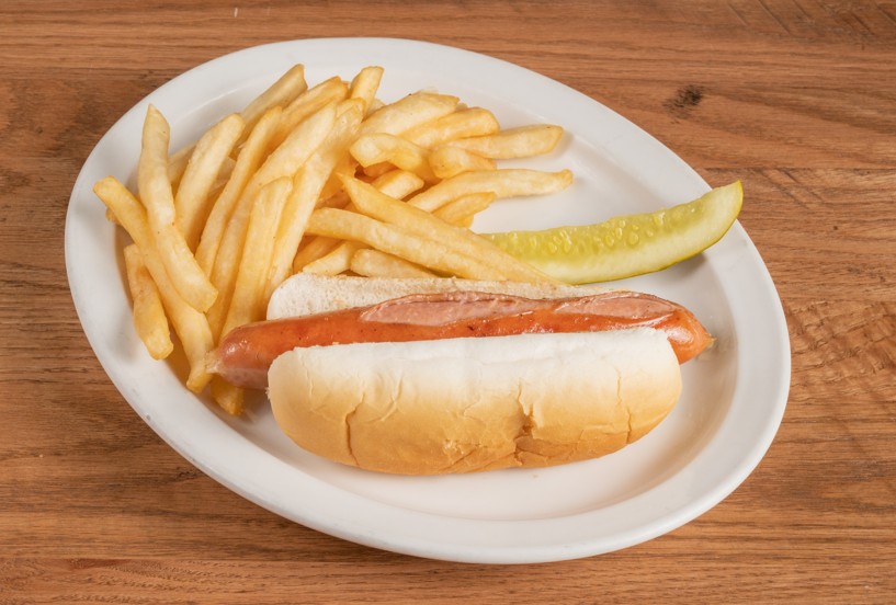 Served with French fries.