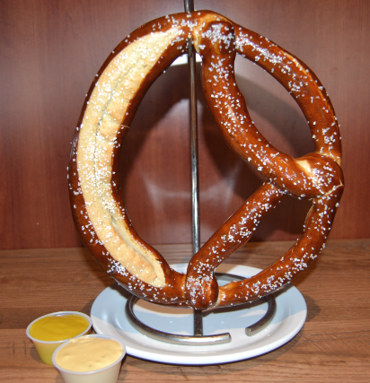 Warm soft pretzel baked with a rich mixture of crab and cream cheese dip then topped with melted cheddar cheese.