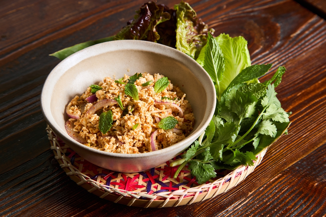 (2/5 Spicy Level) Ground chicken, roasted rice powder, shallot, scallion, cilantro w/chili-lime sauce