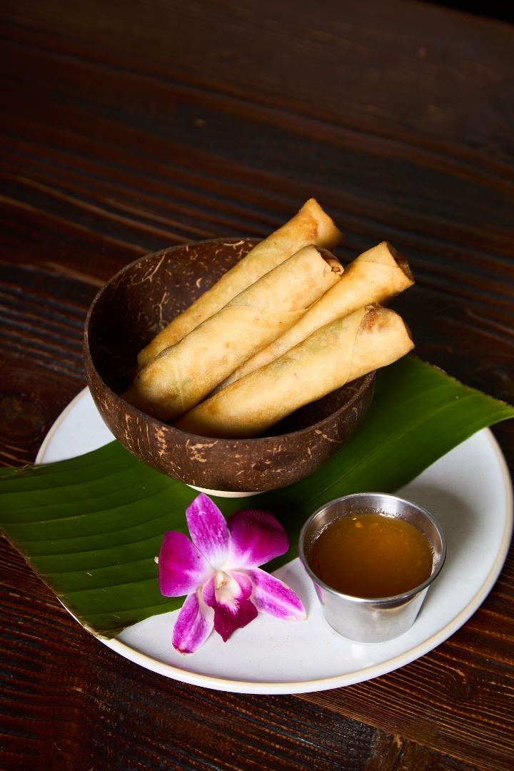 Rice paper wrap, mango, scallion, carrot, avocado, lettuce, glass noodles w/peanut tamarind Hoisin sauce